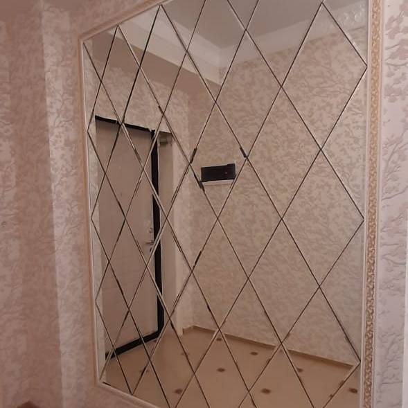 Использована зеркальная плитка "вытянутый ромб" с фацетом.