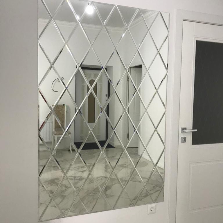 Использована зеркальная квадратная и треугольная плитка с фацетом.